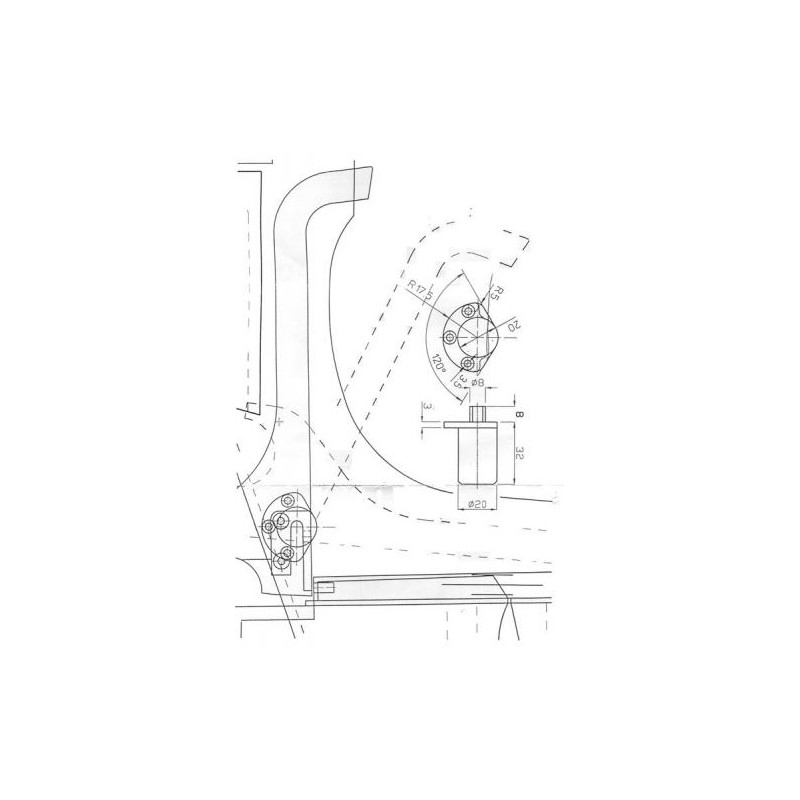 Nous conseillons de monter tout d’abord l’enfoncement Ø 10 mm à 15 mm de profondeur pour la rotation (position 100° en arrière, mesuré verticalement). Monter ensuite le forage principal Ø 16 mm à 30 mm de profondeur pour le cylindre de freinage. La position du cylindre de freinage doit être à au moins 31 mm au dessus du bord inferieur du cylindre du piano. La dimension des plaques est de 10 x 40 mm.